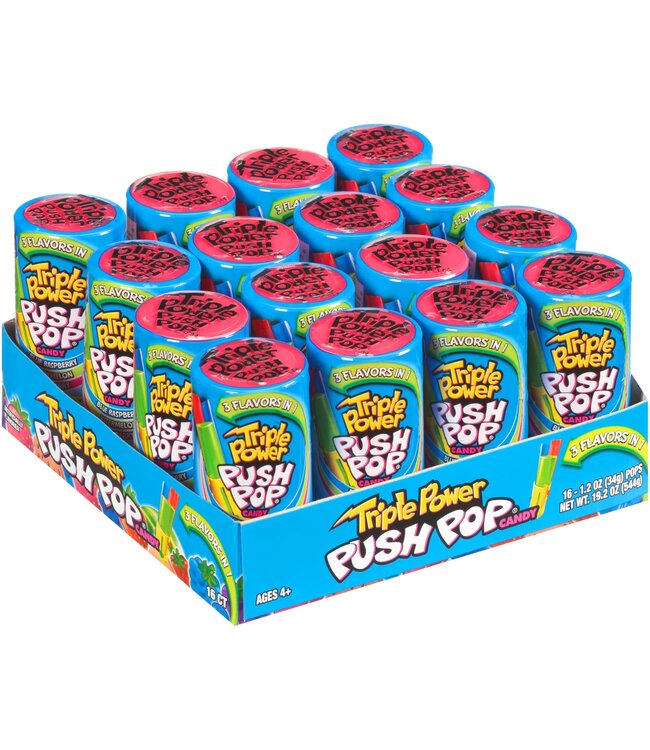 Triple Power Push Pop packs a fruity punch with three explosive flavors in one. Enjoy the fun of pushing up a delicious, tangy treat that gives you a burst of sweetness with every twist!
