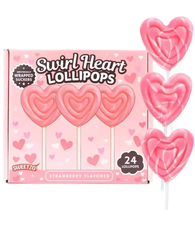 NEEDZO INC Box of Swirl Heart Lollipops, Individually Wrapped, 24 Count