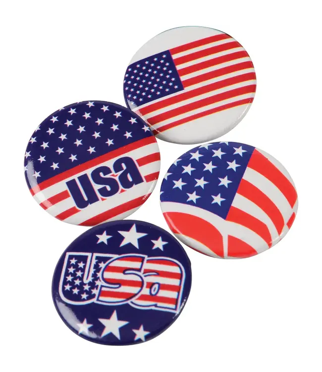 Enhance your patriotic events with the USA Buttons - 24ct by US TOY CO. These buttons are perfect for showing American spirit at parades, national holidays, or any gathering that calls for a touch of patriotism.