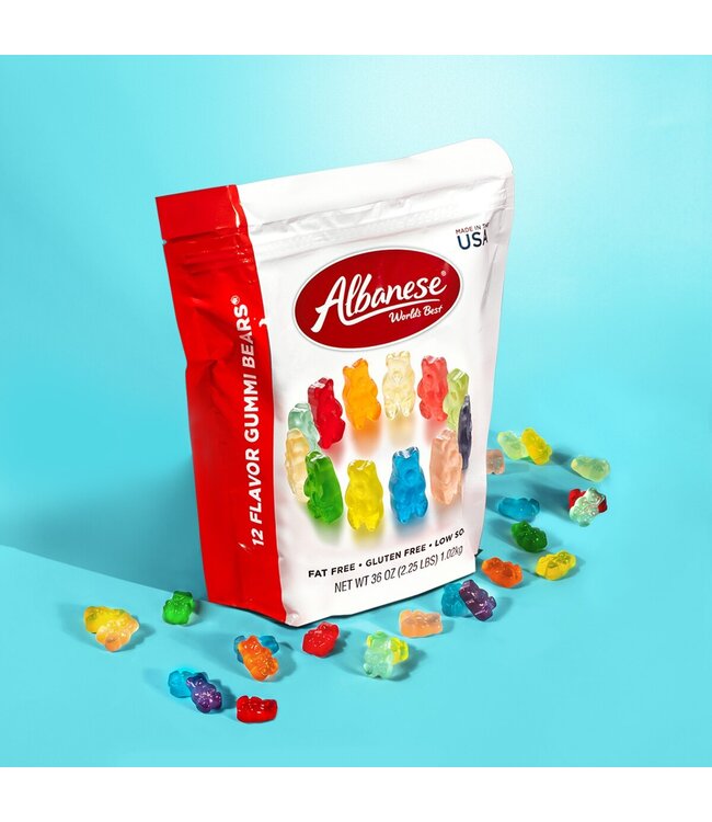 Discover the irresistible taste of Albanese Gummi Bears, a delightful treat for candy enthusiasts. This 36oz bag offers a generous assortment of flavors, perfect for sharing or enjoying solo. Known for their soft texture and exquisite taste, Albanese Gummi Bears are a favorite among candy lovers.