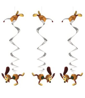 Enhance your Toy Story-themed party with the Toy Story Slinky Dog Hanging Swirl Decorations. These 26-inch silver swirls come in a set of three, perfect for adding a whimsical touch to your event. The decorations are inspired by the beloved character Slinky Dog, making them a delightful addition to any Disney fan's celebration.