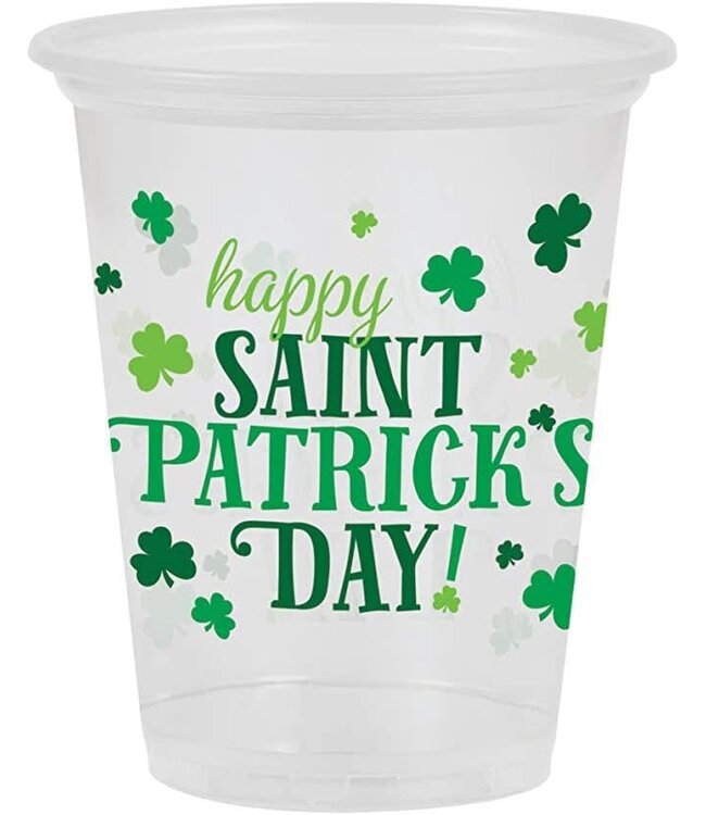 These Creative Converting Happy St. Patrick's Day Plastic Cups are perfect for any festive gathering. Holding 16oz, they are ideal for serving a range of beverages, from soda to beer.