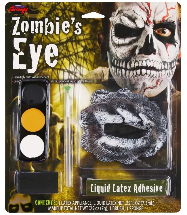 Unleash the ultimate undead appearance with Fun World's Black-Out Zombie Eye. Perfect for Halloween or any costume party, these lenses are designed to give your eyes a hauntingly realistic zombie look. Effortlessly capture attention and enhance your costume with this spine-chilling accessory.