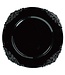 The black plastic motif charger features a sleek, elegant design with a decorative edge. Perfect for adding a touch of sophistication to your table setting, it complements various party themes and decor. Read more.