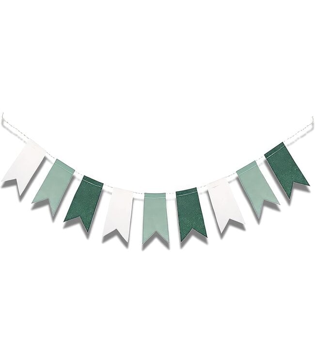Add a touch of elegance to any event with this Light Green, Dark Green & White Felt Pennant Banner featuring trendy hues to effortlessly match your party theme and color scheme.