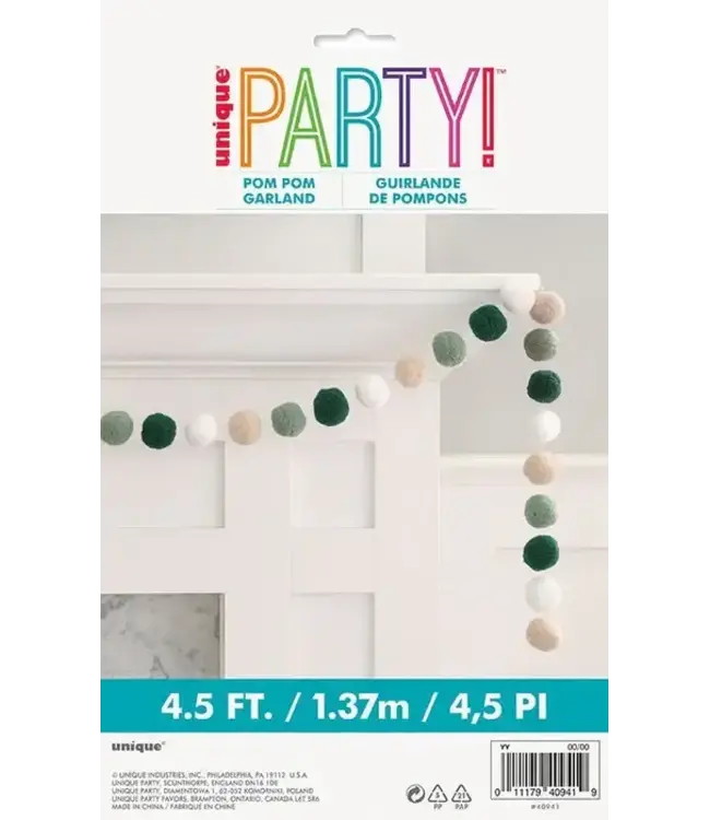 UNIQUE INDUSTRIES INC Botanical Pom Pom Garland - 4.5 Foot
