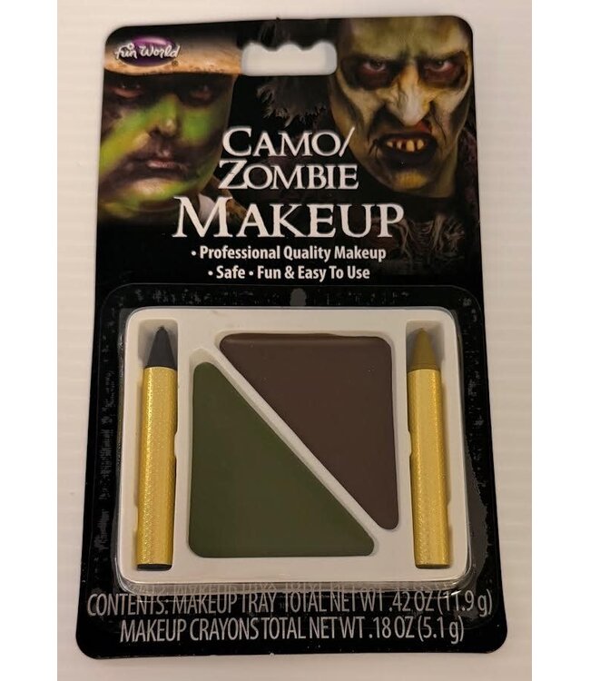 Achieve the perfect zombie or camo look with Fun World's CAMO/ZOMBIE MAKE-UP. Ideal for Halloween or costume parties, this kit offers easy application and professional results. Read more.