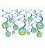 These hanging decorations feature cardstock swirls with images of Poke Balls, Pikachu, Eevee, and other well-known Pokemon characters. Hang these Pokemon decorations above the cake table for a sweet decorative touch.