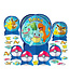 Featuring popular Pokemon characters and Poke Balls, this colorful party decoration livens up any party table. Assemble the large centerpiece. Display the smaller Pokemon cutouts, and scatter the Pokemon cardstock cutouts for a cool Pokemon party table display.