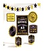 Creating a picture-perfect black and gold birthday scene is easy with this all-in-one set. Included is a star garland, "Happy Birthday" centerpieces, paper fans, cutouts with cheeky phrases, and a customizable sign with number stickers. Read more.