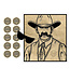 Includes a large game board (18 x 16'½") featuring a sheriff, along with badge stickers for playing and a Blindfold.