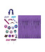 This photo scene setter features a metallic purple fringe backdrop and colorful Descendants photobooth props including a "Good 2B Bad" headline prop, a crown, and a hook. Take cute pictures of the kids posing with the Descendants 3 Scene Setter with Photo Booth Props!