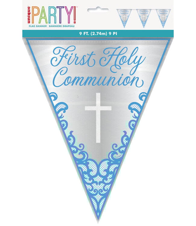 Make the First Holy Communion celebration unforgettable with the Fancy Cross Flag Banner from UNIQUE INDUSTRIES INC. This elegantly designed banner spans 9 feet, perfect for adding a touch of sophistication to your gathering. Crafted with care, it combines style and functionality for an enduring impression.