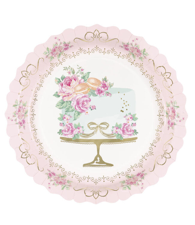 UNIQUE INDUSTRIES INC Golden Garden Party Cake 9in Scalloped Edge Plate - 8 Count