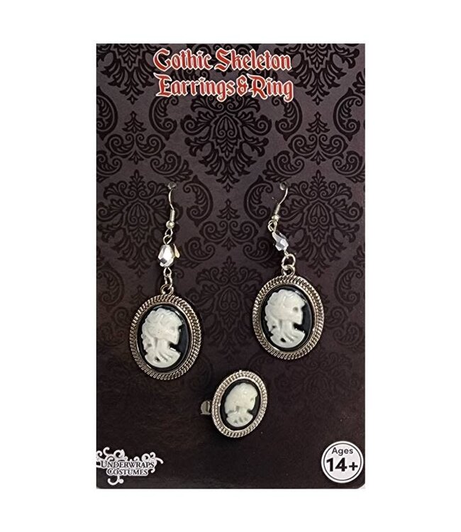 UNDERWRAPS Gothic Skeleton Earrings & Ring Set