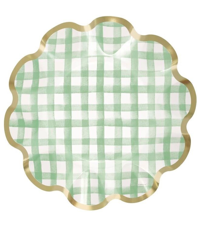 Elevate your dining experience with the Green Gingham Paper Dinner Plates by UNIQUE INDUSTRIES INC. These 9.75-inch plates are both functional and stylish, making them ideal for parties, picnics, and everyday use. Designed with durability in mind, they are a convenient option for serving meals without the hassle of cleanup.
