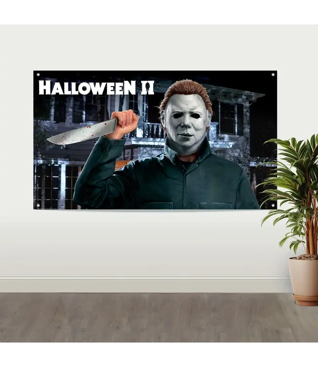 Featuring the masked killer with his bloody knife in front of a chilling backdrop, this polyester banner makes an unforgettable statement at any horror-themed celebration. Grommeted corners make hanging simple, and at roughly 3' tall x 5' wide, it’s the perfect size to use as party décor and then repurpose as wall art in a bedroom, dorm room, or den.