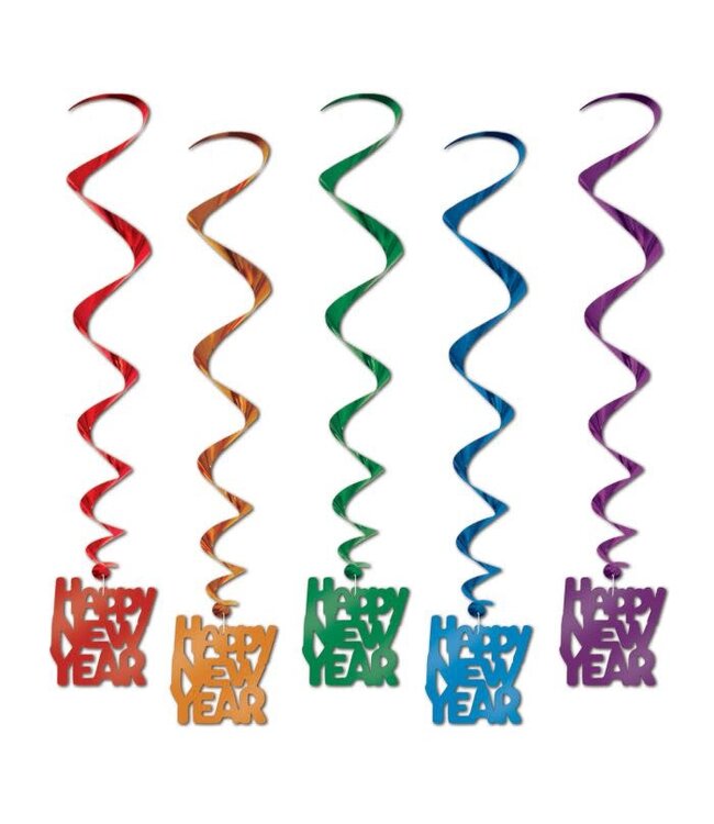 Enhance your New Year's Eve celebrations with Beistle's Happy New Year Whirls. These decorations are perfect for adding a festive touch to any party setting. With over a century of experience, Beistle ensures high-quality and memorable party goods.