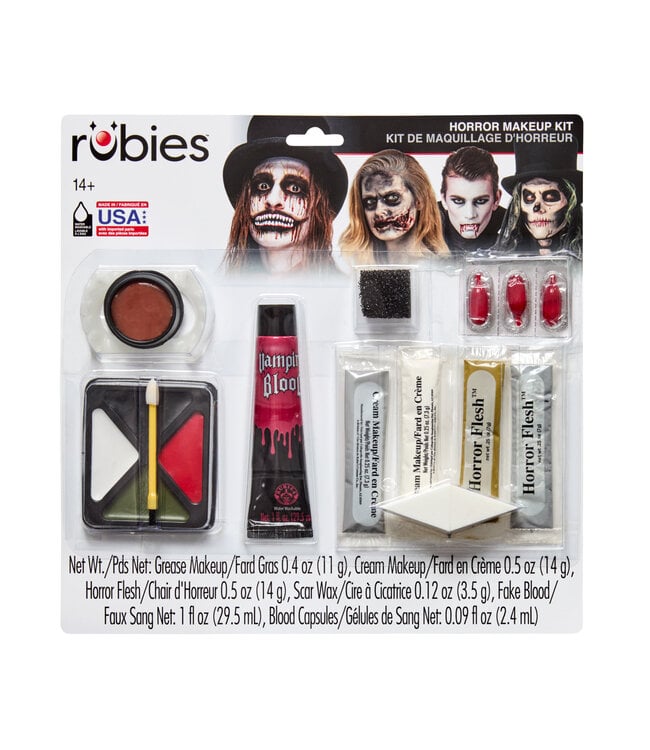Unleash your inner monster and create spine-chilling effects with the RUBIES Horror Makeup Kit. Perfect for Halloween enthusiasts and cosplay artists alike, this kit provides everything you need to craft a terrifying look. Designed for easy application, it allows you to achieve professional-quality results right at home.