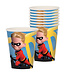 Each cup features Dash running against a blue cityscape. The word "Dash" is written in bold yellow lettering. Set the table and serve up party drinks to your child and all their friends with these disposable paper cups — they're perfect for an Incredibles 2 birthday party.