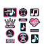 The bright decorations include crown, musical notes, and headlines like "Global Sensation" and "Challenge Accepted." Hang the bright blue, pink, and purple decorations on walls, doors, or tables for colorful fun!