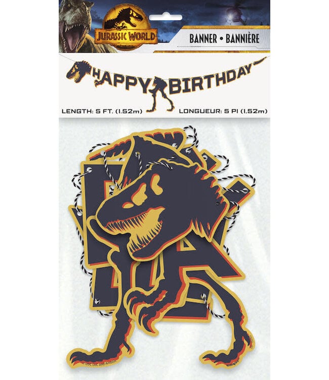 Make your child's birthday party roar with excitement with the Jurassic World 3 Banner "Happy Birthday" from UNIQUE INDUSTRIES INC. This 5-foot banner is the perfect addition to any dinosaur-themed celebration, featuring iconic elements from the beloved Jurassic World franchise. Crafted for durability and visual appeal, this banner is sure to be a hit among young dinosaur enthusiasts.