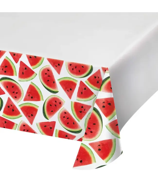 The Marvelous Melon Paper Table Cover, sized at 54" x 96", adds a festive touch to your table with its vibrant watermelon pattern, perfect for summer events. Read more.
