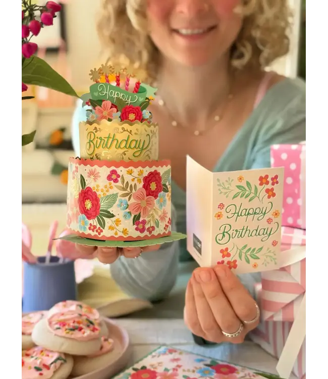 Make their special day even sweeter with our Mini Blooming Birthday Cake Pop-Up Card. Our pop-up two-tiered cake, adorned with gold foil and delicate florals, is a one-of-a-kind way to send birthday cheer.
