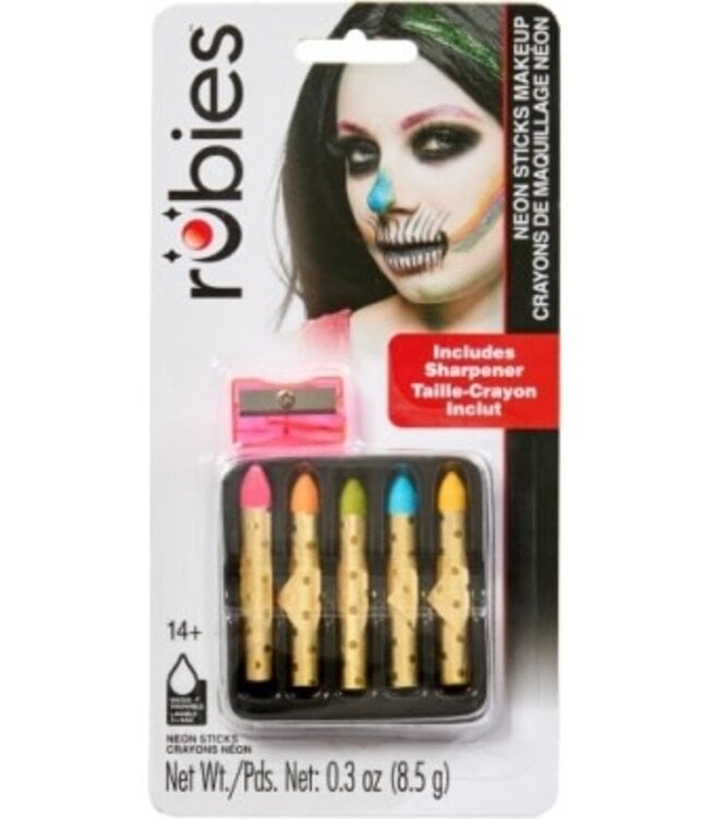 Transform your look with RUBIES Neon Colors Makeup Sticks, perfect for creating bold and vibrant designs effortlessly. Ideal for any occasion, these sticks offer long-lasting wear. Read more.