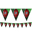Our plastic pennant banner features 10” long plastic flags with a football on them and each banner is 12 feet long.