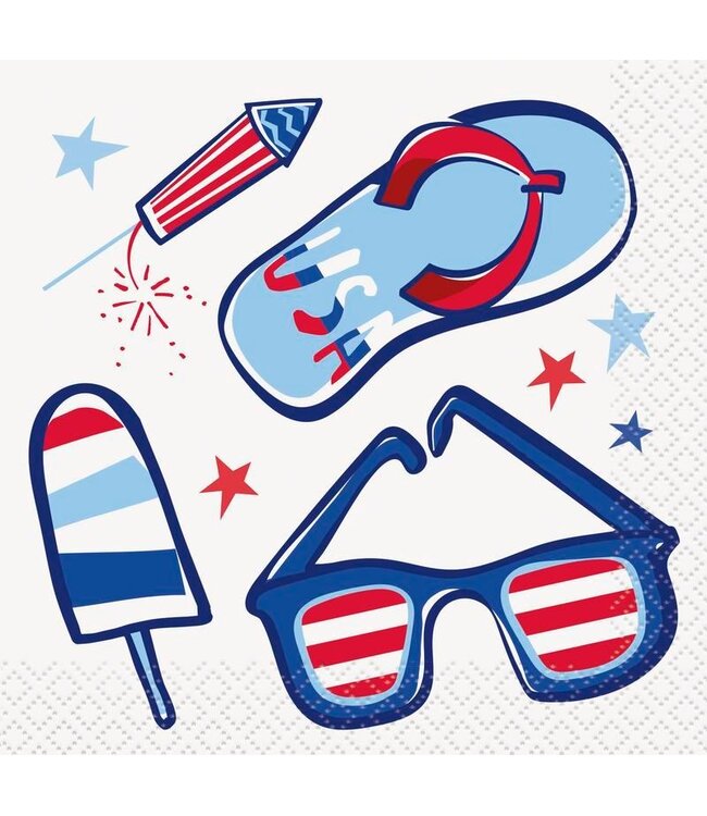 Enhance your summer gatherings with the Patriotic Summer Beverage Napkins by UNIQUE INDUSTRIES INC. Perfect for Fourth of July parties, these napkins add a festive touch to your drink station or dining table. Made with quality materials, they ensure durability and easy clean-up at any celebration.