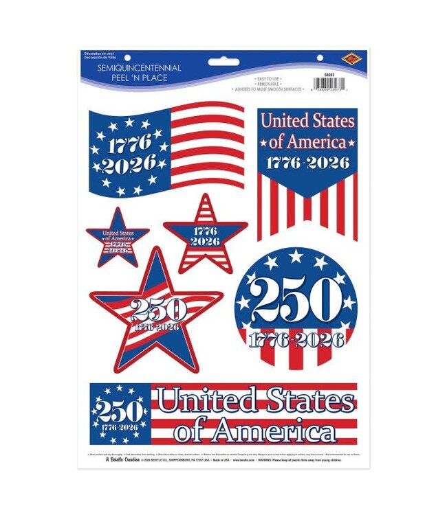 Beistle's Semiquincentennial Peel ‘N Place Decals offer a vibrant and patriotic way to celebrate America's 250th anniversary with easy-to-apply vinyl wall stickers. Read more.