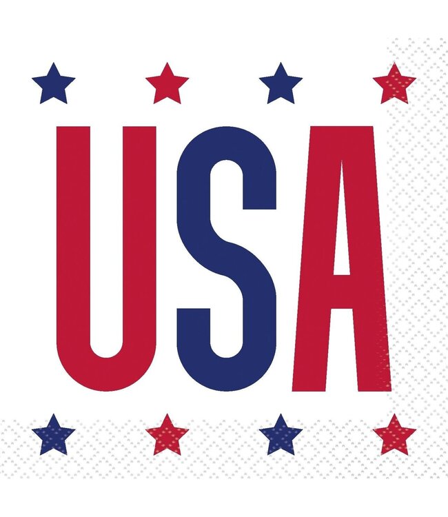 Add festive flair to your USA-themed party with Peppy Patriotic USA Beverage Napkins. Featuring bold USA with stars design, these durable, absorbent napkins are perfect for drinks or appetizers. Pack of 16. Read more.