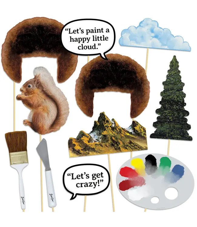 Transform any party or event into a memorable experience with PRIME PARTY's Bob Ross Photo Booth Props. These delightful props are perfect for adding a creative twist to your gatherings, ensuring guests have a fun and engaging time. Ideal for fans of the iconic painter, these props serve as a playful homage to Bob Ross's unique style and personality.