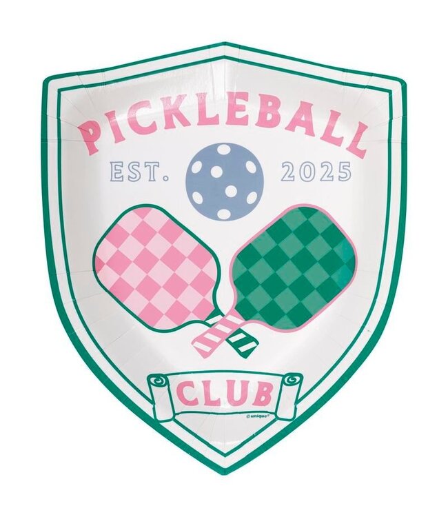 Elevate your gatherings with the Playful Summer Pickleball Crest Shaped Plates from UNIQUE INDUSTRIES INC. Perfectly designed for pickleball enthusiasts, these plates add a touch of fun and style to any event. Whether you're hosting a tournament or a casual get-together, these plates ensure your table setting is as engaging as your game.
