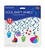 Brighten up your summer party decorations with these Pool Party Whirls! These metallic blue whirls feature attached flip flop, beach ball, and inflatable cutouts. Package includes 6, 15in whirls and 6, 30.5in whirls with cutouts. Read more.