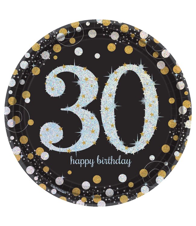 Amscan Sparkling Celebration 30th Birthday Dessert Plates - 8ct