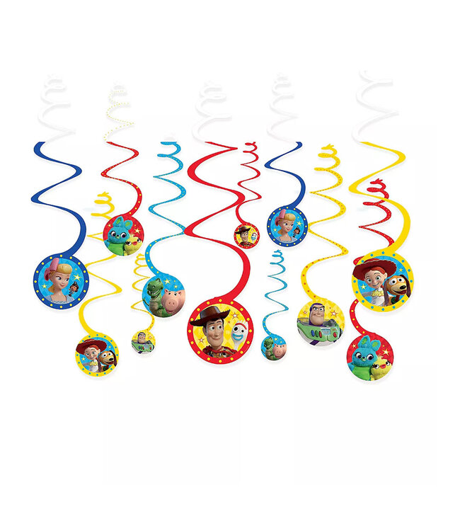These cardstock swirl decorations come in blue, red, and yellow and feature Woody, Buzz Lightyear, and other characters from the movie. Hang these swirl decorations from the ceiling to complete the rest of your little one's Toy Story-themed birthday!