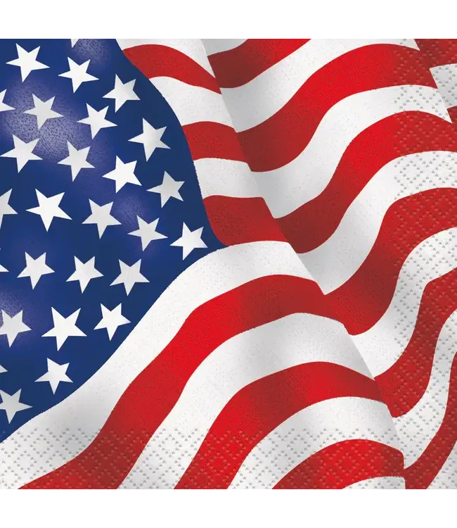 Add patriotic flair to your celebration with USA American Flag Beverage Napkins. These 2-ply paper napkins feature a classic flag design and are perfect for table settings or easy grab-and-go use. Pack of 16.