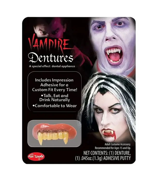 Enhance your Halloween costume with these realistic Vampire Dentures from Fun World. Perfect for adding a spooky touch to your vampire ensemble, these dentures are designed for comfort and style.