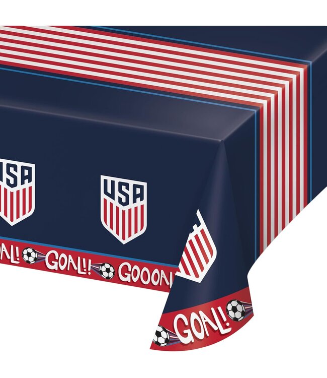 Celebrate the excitement of the World Cup 2026 with the USMNT Men's Soccer Plastic Tablecloth, perfect for sports enthusiasts and party hosts alike. This durable table cover measures 54" x 102", making it ideal for various table sizes and events.